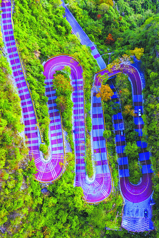 这条公路全长仅约6公里,却在仅数百米高的斜坡上盘旋出了一十三道弯。在某些路段,26个回头弯几乎像层叠在一起。