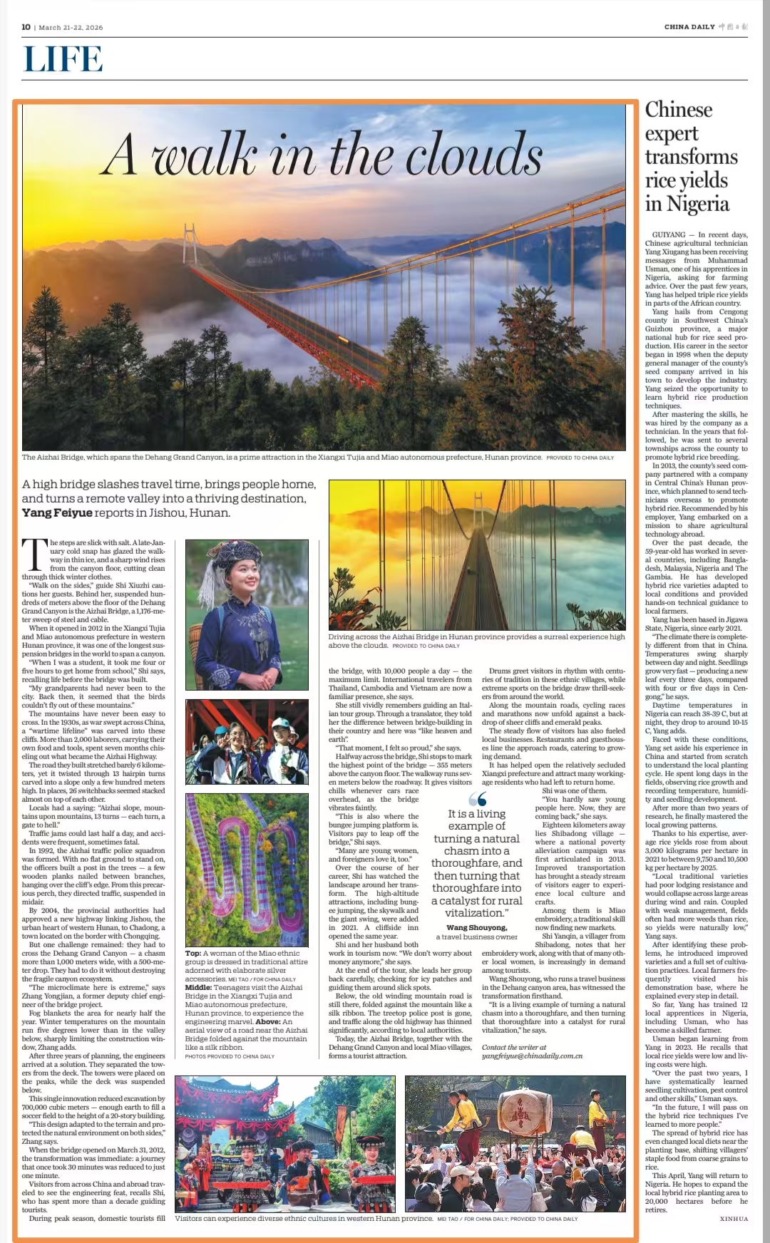 在这些少数民族村寨里,迎接游客的阵阵鼓声踩着传承百年的传统节拍。与此同时,大桥上的极限运动则吸引着来自世界各地的冒险者。