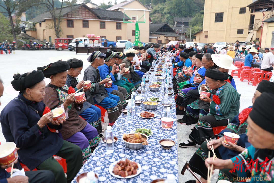 十八洞村的老人们围坐在一起,共享重阳“团圆饭”。 彭涛 摄