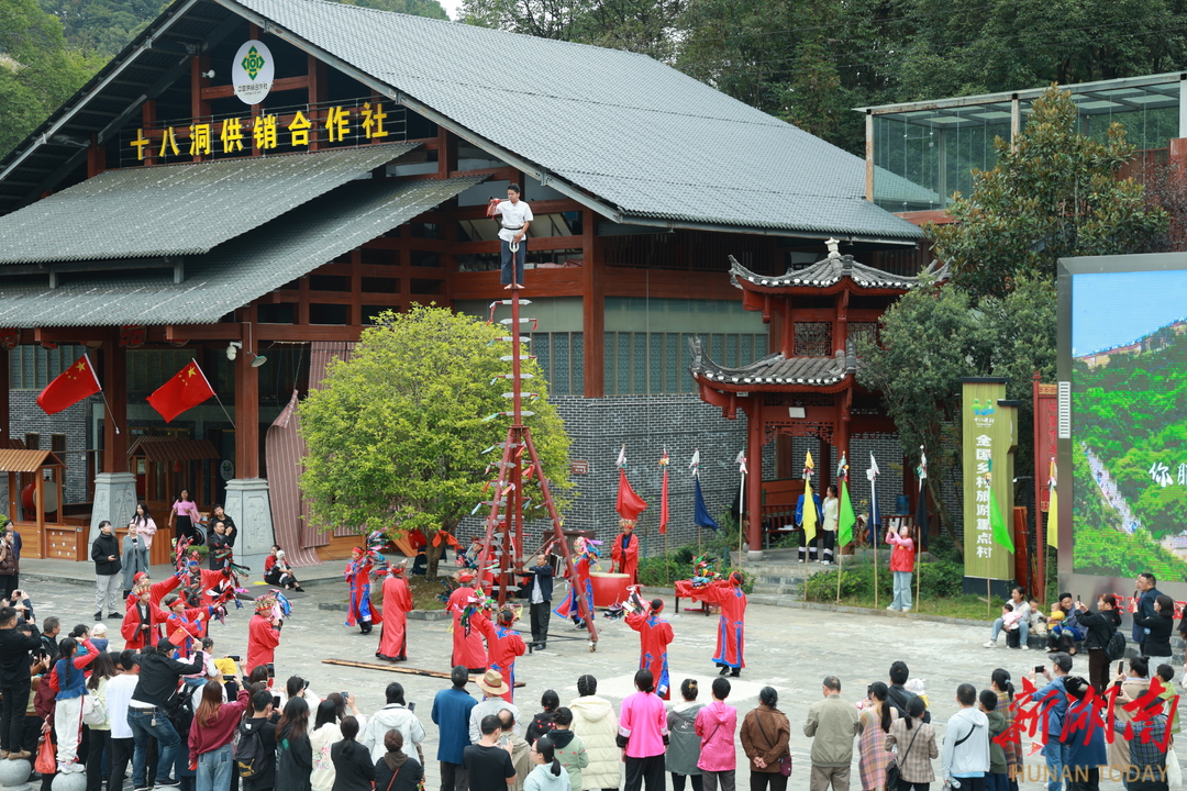 四面八方的游客在十八洞村欣赏苗族非遗展演。 林彬 摄